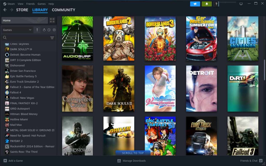 試しにsteamを導入してゲームができるか確認してみましょう。インストールするとログイン画面、ログインが完了すると見慣れた画面が出てきます。ゲームそれほど重たくないものであれば試すことができました。
