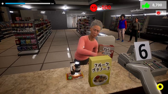 次々来店する客の注文に応じ、商品をスキャナーで読み取る。素早く正確にこなすことでスコアが加算される。