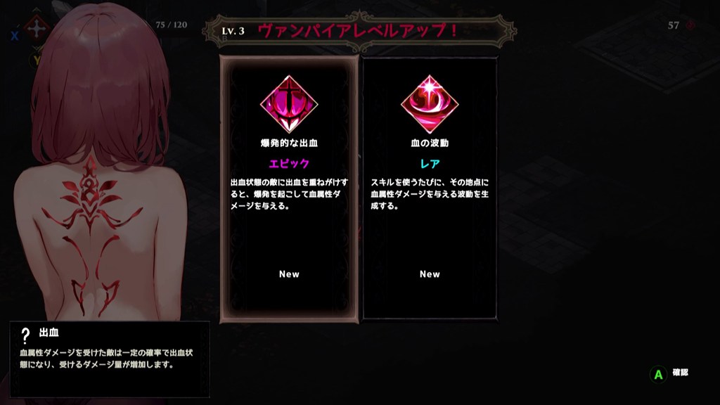 本作最大の特徴は、倒したヴァンパイアから得られる「血塊」の使い道。